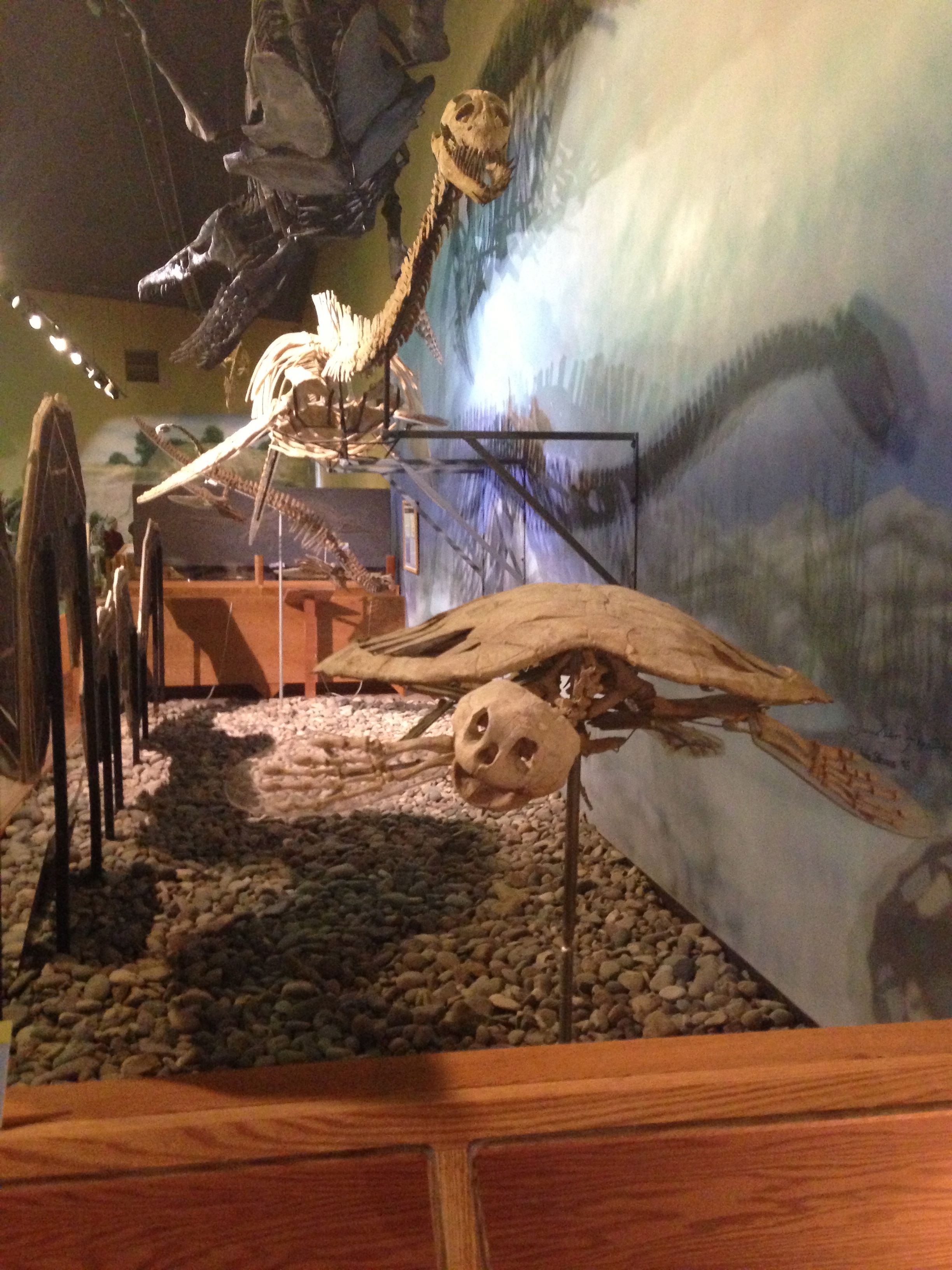 Then we forged on to Thermopolis (and through Ten Sleep the second time, where I was informed that the best Huckleberry Ice Cream exists) and enjoyed the Wyoming Dinosaur Center. It was fascinating…taking the viewer from fossilized muck all the way up to the big guys. Some of the fossils, found in sandstone or limstone looked like works of art.