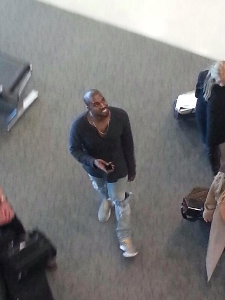 Took a shuttle to the International terminal (terminal three), found our gate, found some food, got a picture of Kanye West heading to Paris France,