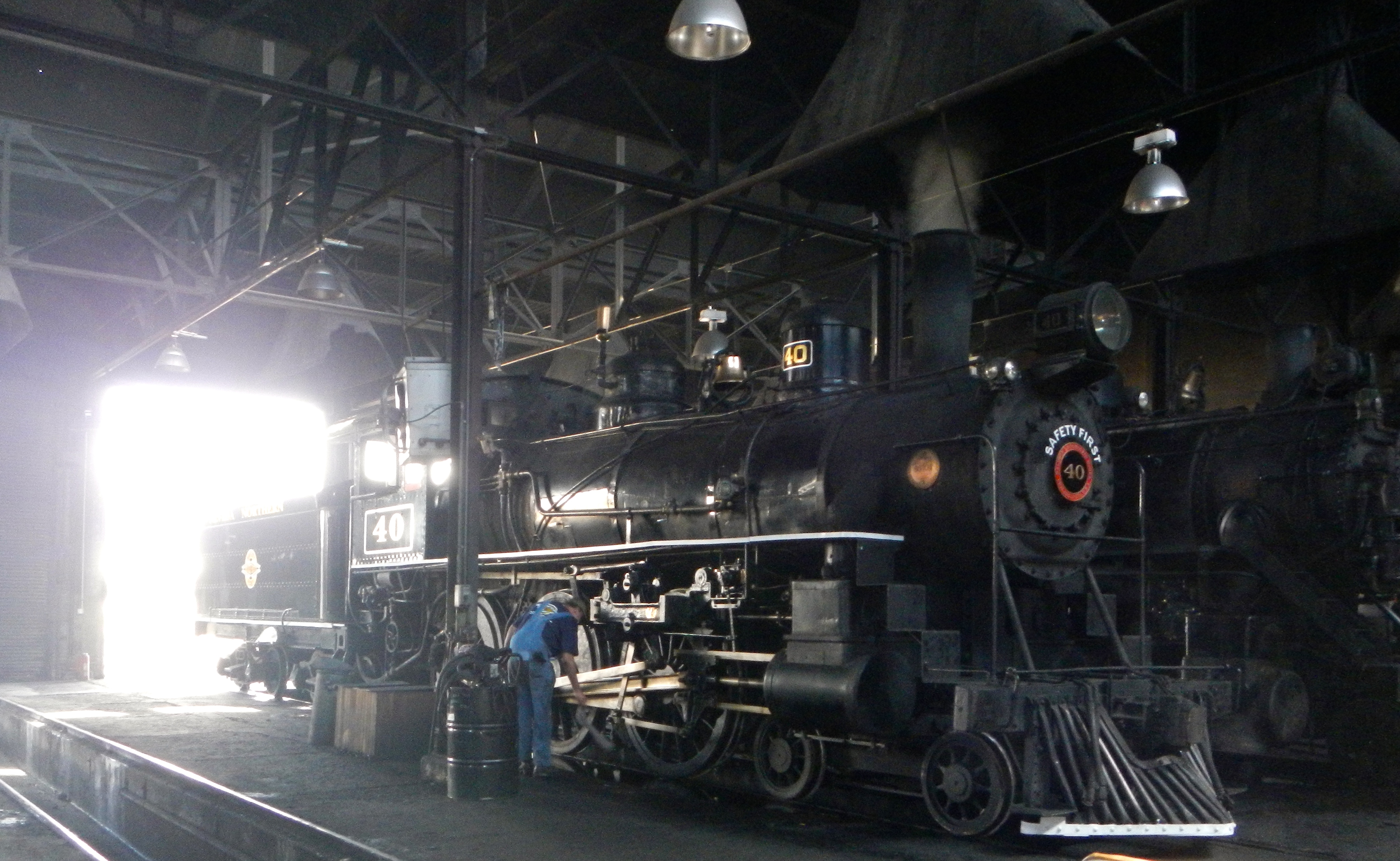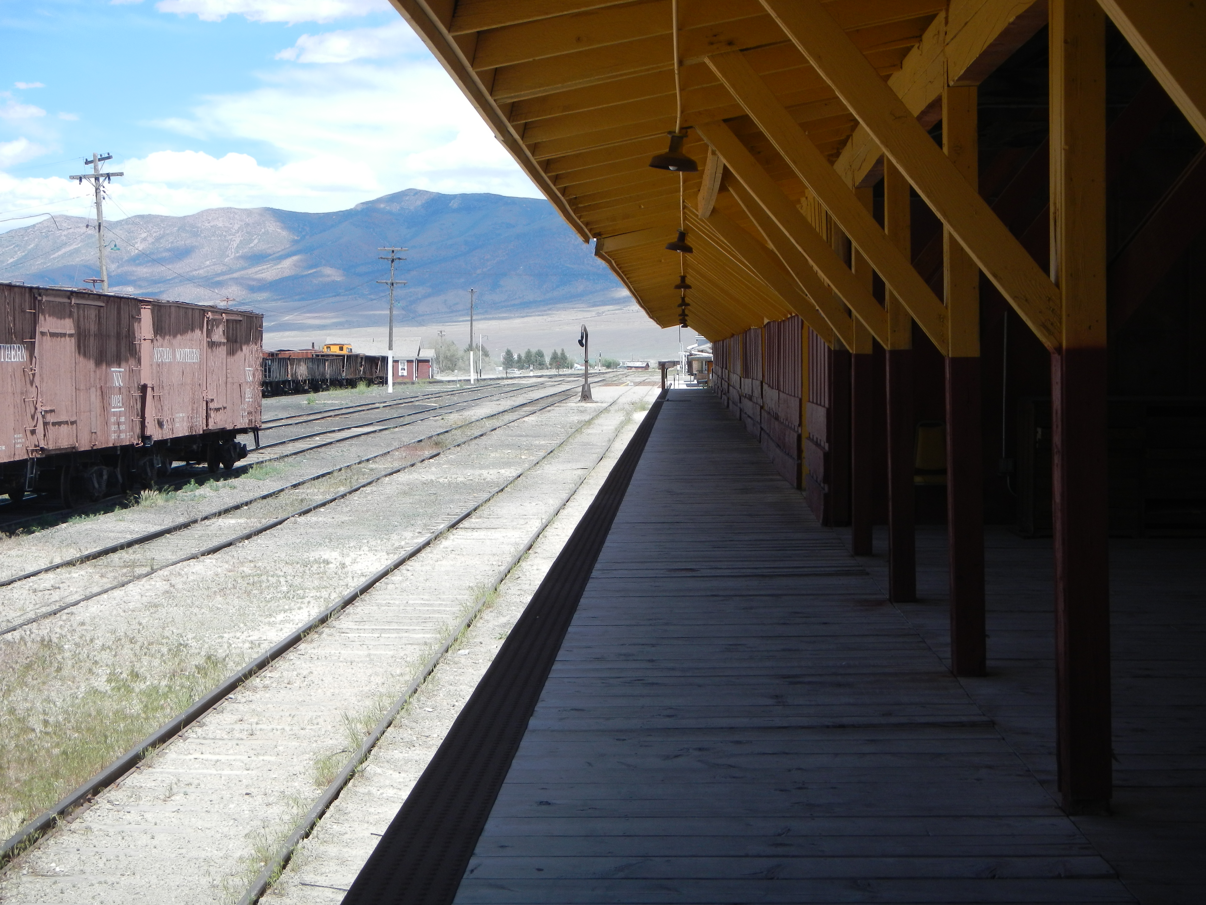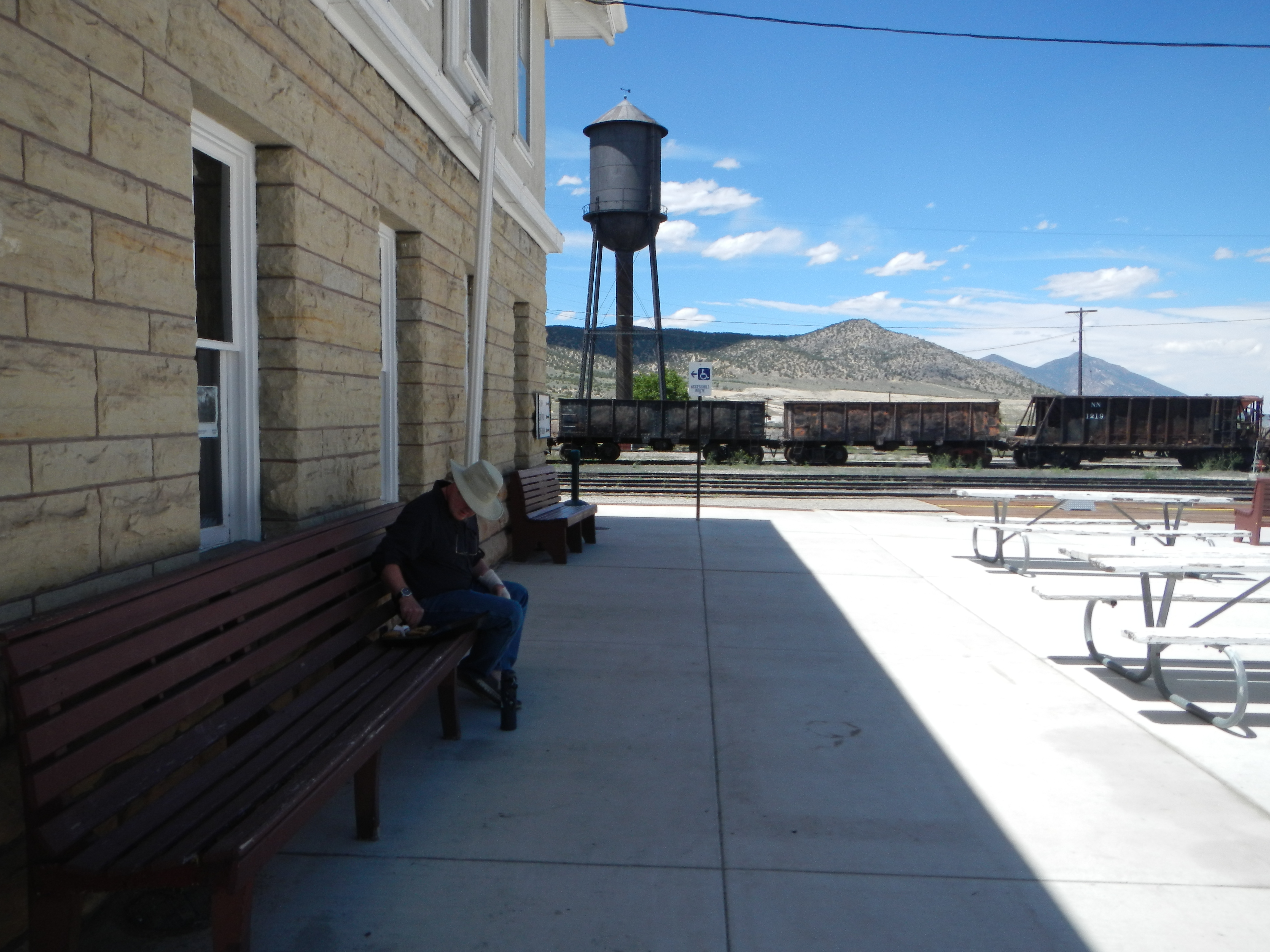 I think I’ll let the pictures speak for themselves. Suffice it to say, we did travel HWY 50 and it wasn’t as lonely as some of the other roads we came upon. Although it took twice as long, I’m so glad we got off I-80, because there are some lovely places…especially along the Ruby Mountains. There were some lonely places as well. Made me wonder what people did. We stopped for awhile in the early afternoon in Ely, Neveda. They’ve got a cool steam train museum in the old Nevada Northern depot. If we’d wanted to stay, we could have ridden on one of the steam trains. Instead we watched a guy warming one up and cooling another down. We weren’t sure if we’d be allowed into the area as it said “unauthorized people are not allowed” but an oiler working there invited us in. Thanks to him, we got our Steampunk On.