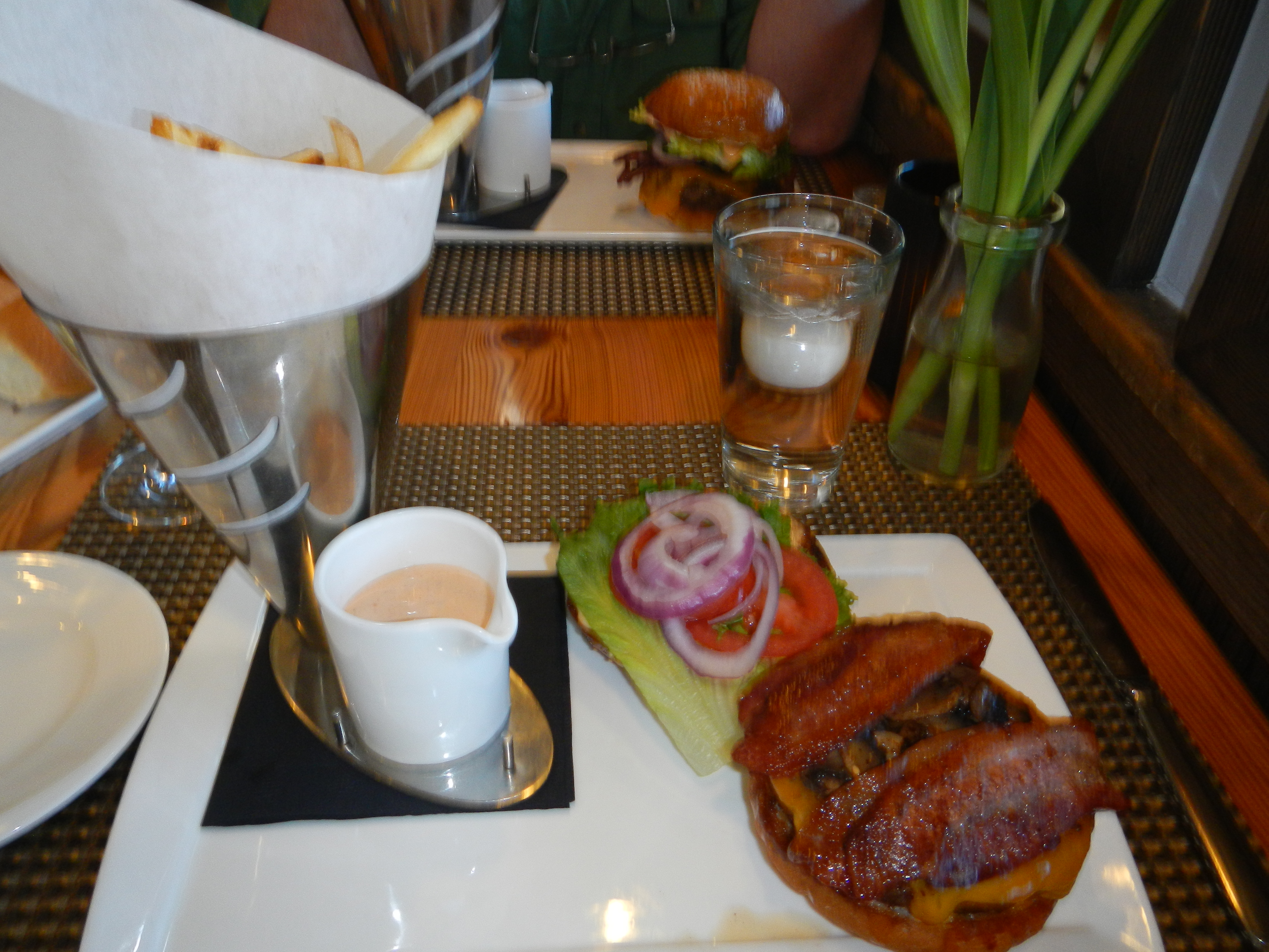 Glass of wine….helped with that weird road thing you get. Dinner was yummy. We ate at the Northside Kitchen. Tonight, with the full price of a glass of beverage, you get your meal for 40% off. A delish buffalo burger.