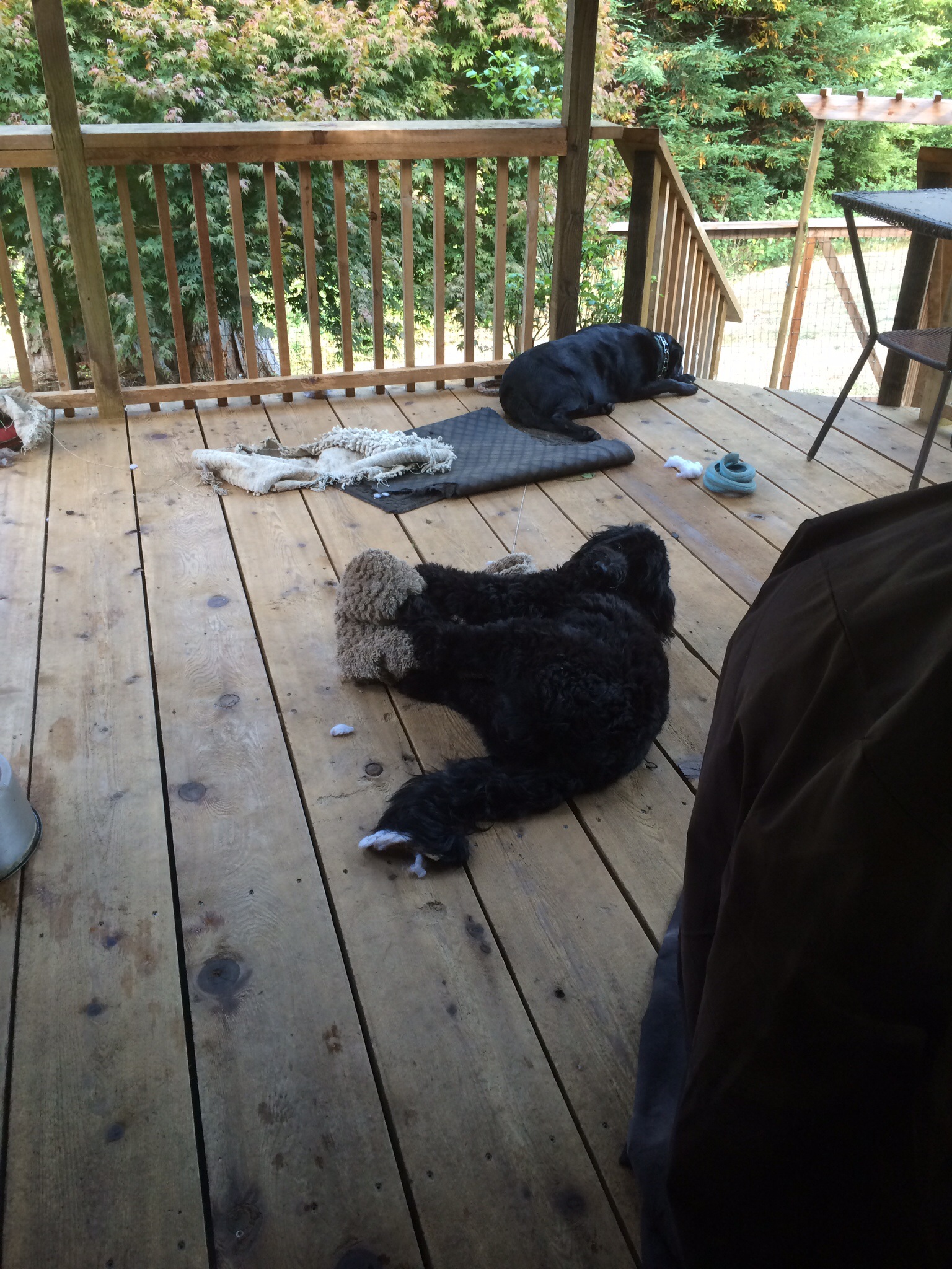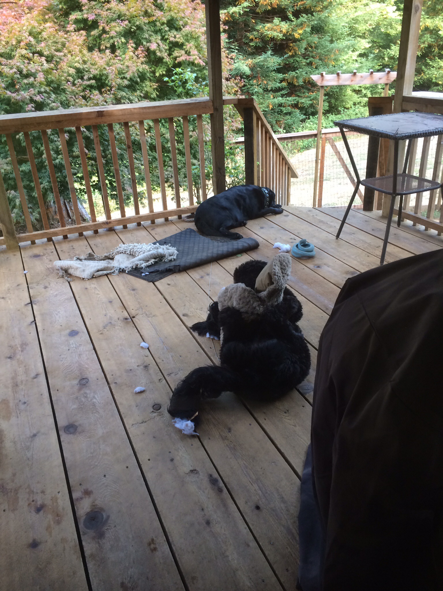 And here are pics of Miki destroying another doggy bed. Have a great week, peeps! I shall be fearlessly packing and Sky Dancers is on hold due to technological difficulties…