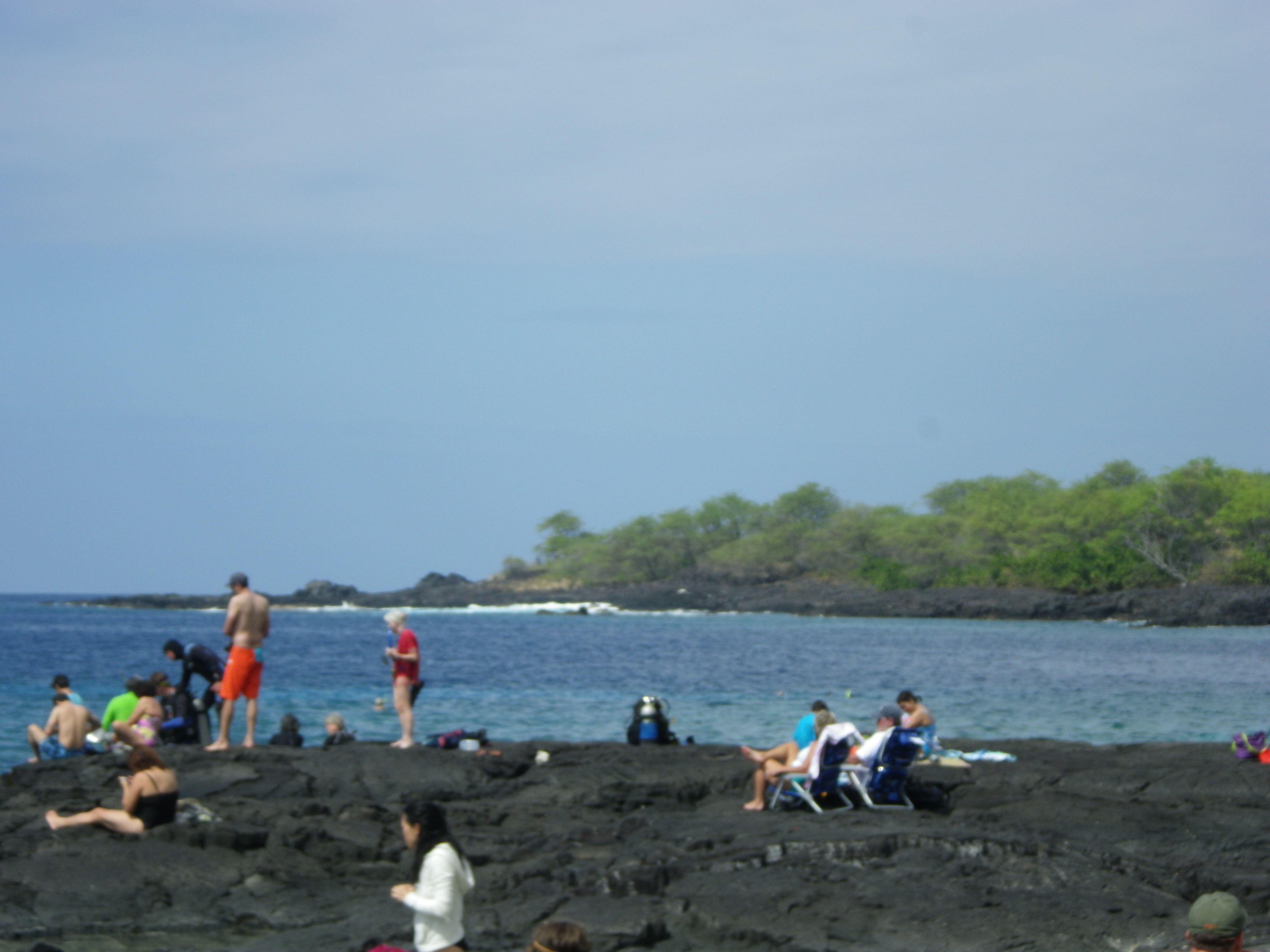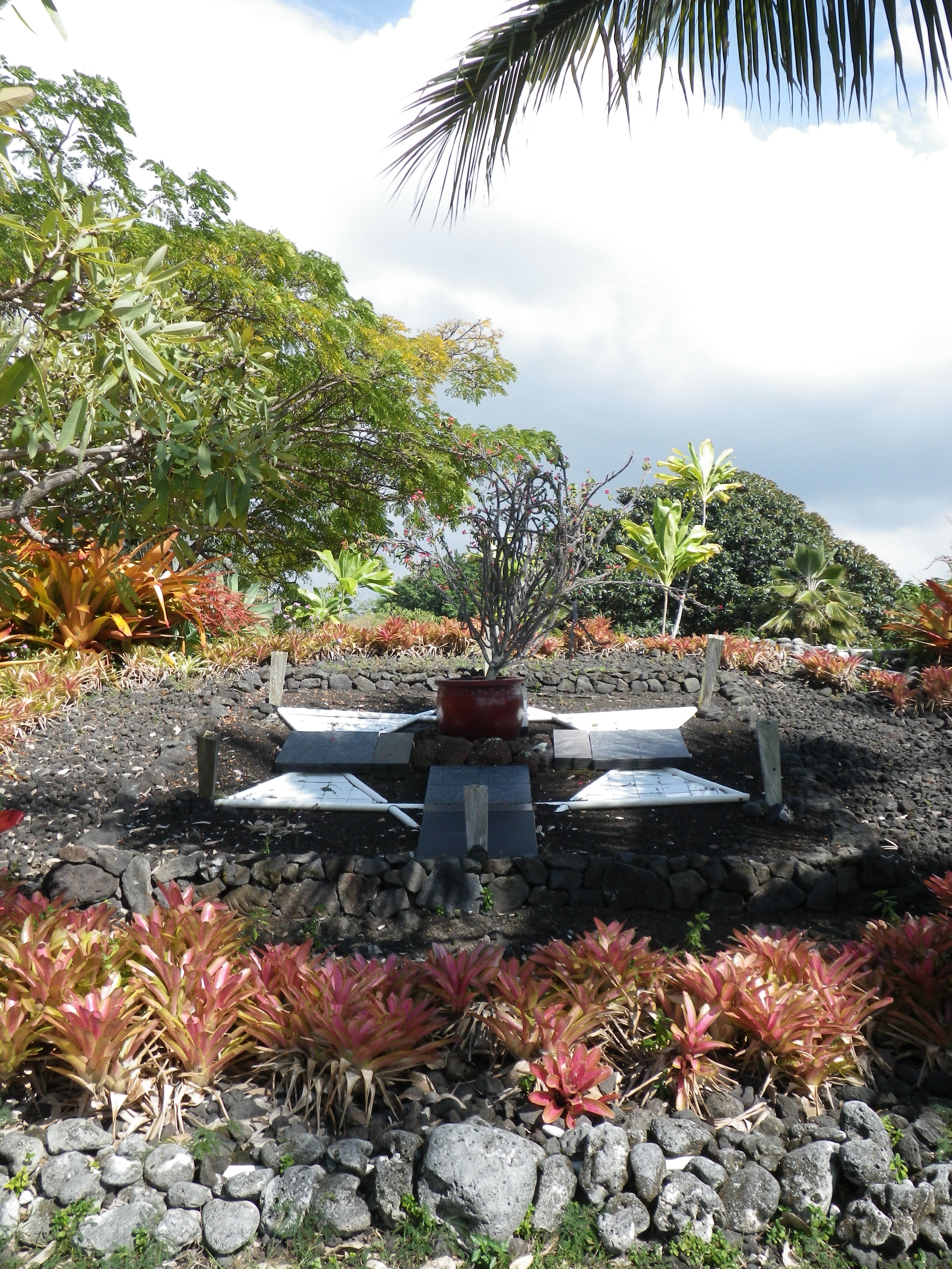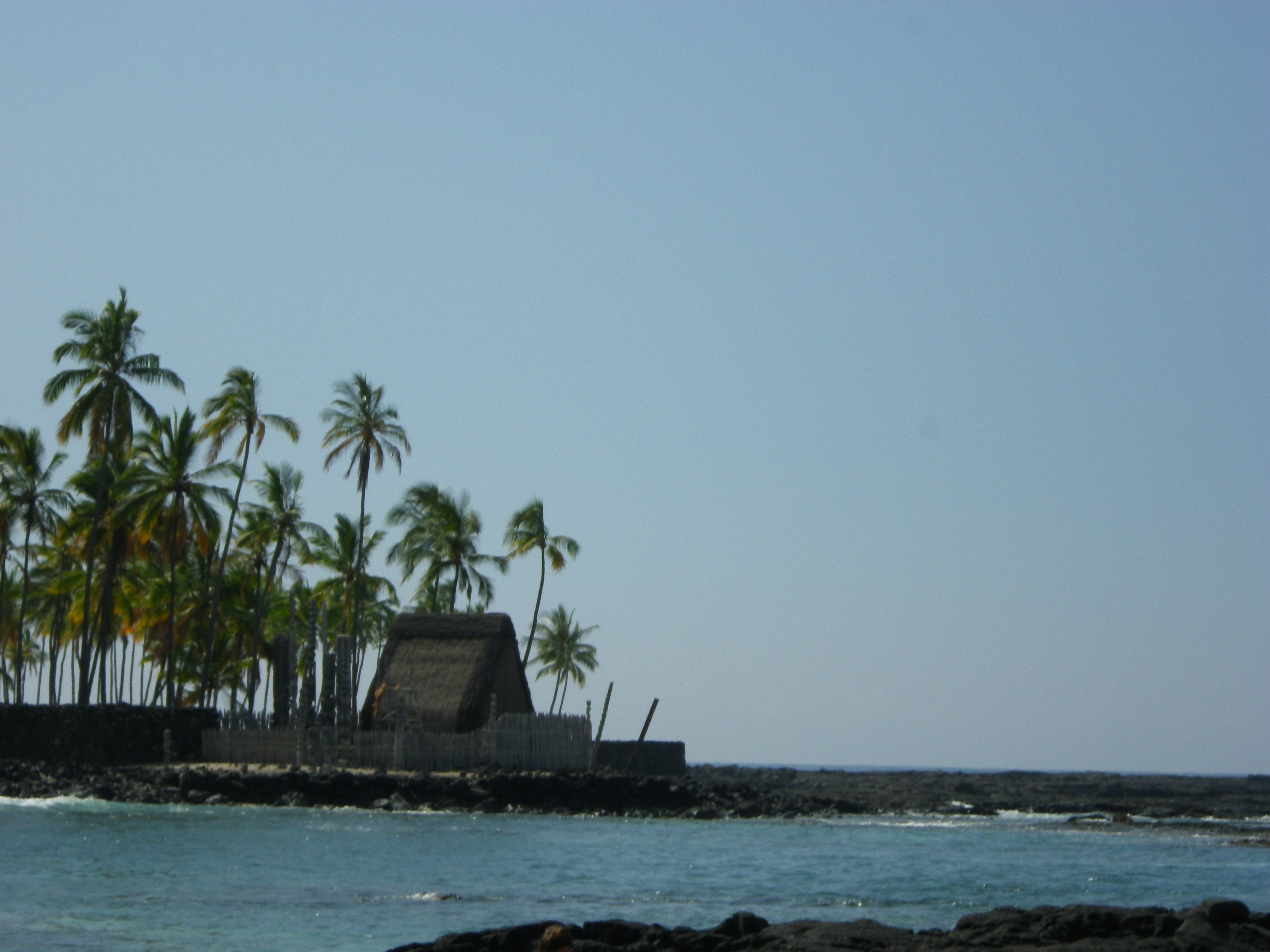 It’s called Two Step because there are two ledges where you can sit and easily get your gear and yourself into the water. The surge can be strong and smack you around against the lava if you don’t use this mode of immersion and extraction of your person. We won’t go into details but Miss Anni and I are sporting large bruises upon our bums. Across from Two-Step is the Point of Refuge or, in Hawaiian, Puuhonua O Honaunau. During the time of Kings, there were rules upon rules to follow if you were not royalty. If you broke a rule, it was death. Unless…you could get yourself to a Place of Refuge, do some penance and all would be forgiven. Interesting and beautiful spot to visit.