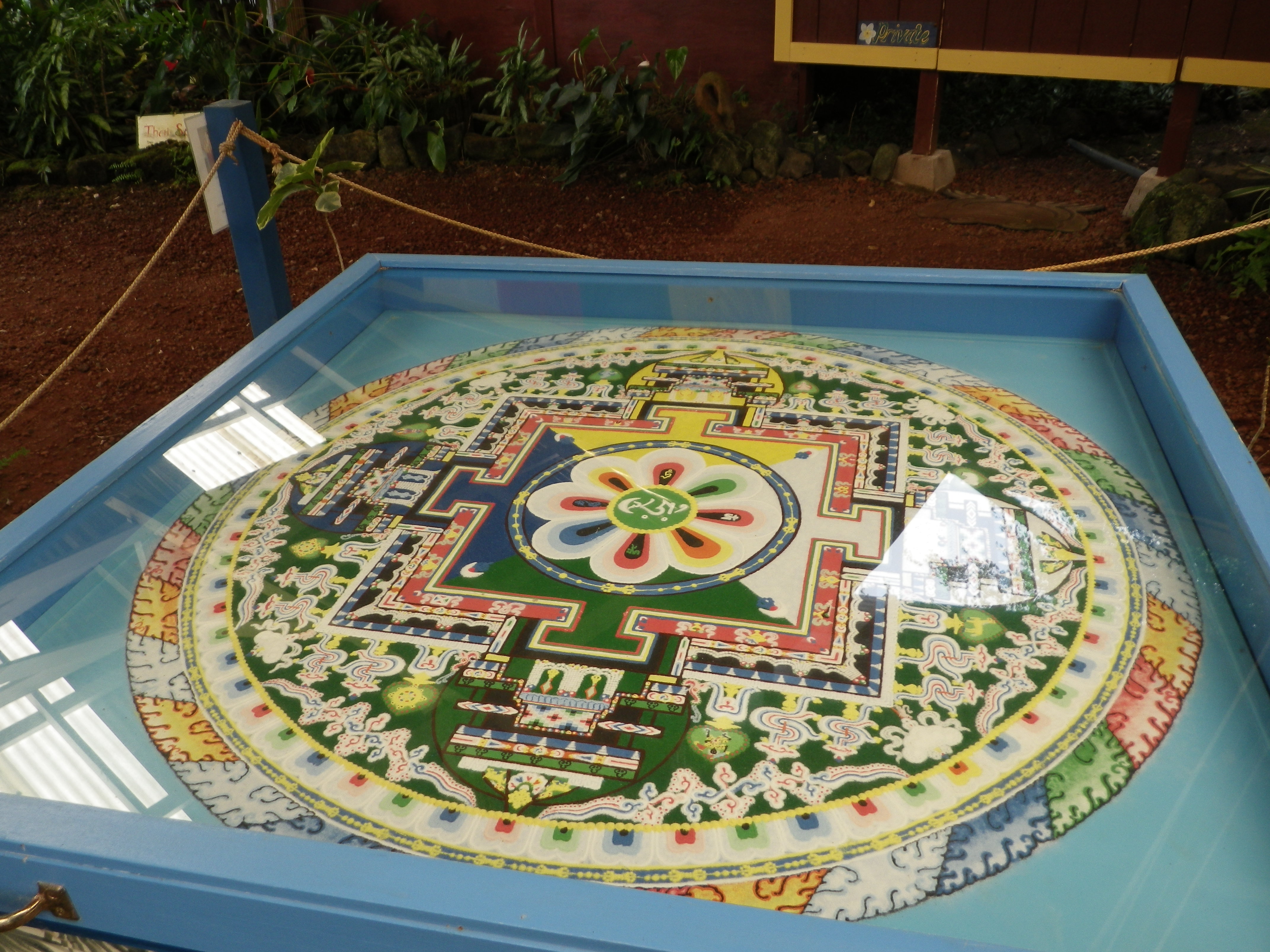 An actual sand mandala…(and pictures of the monks making it)