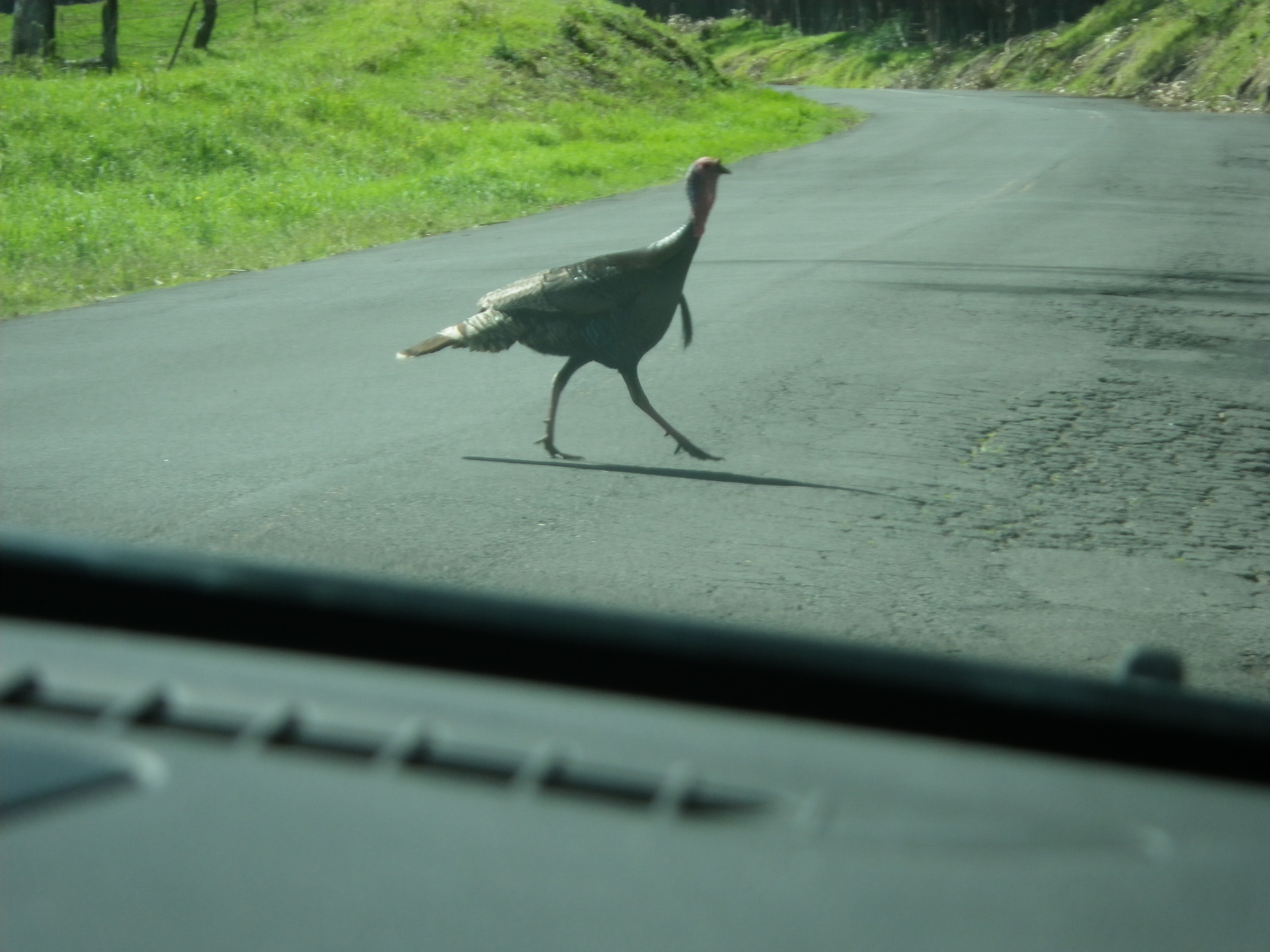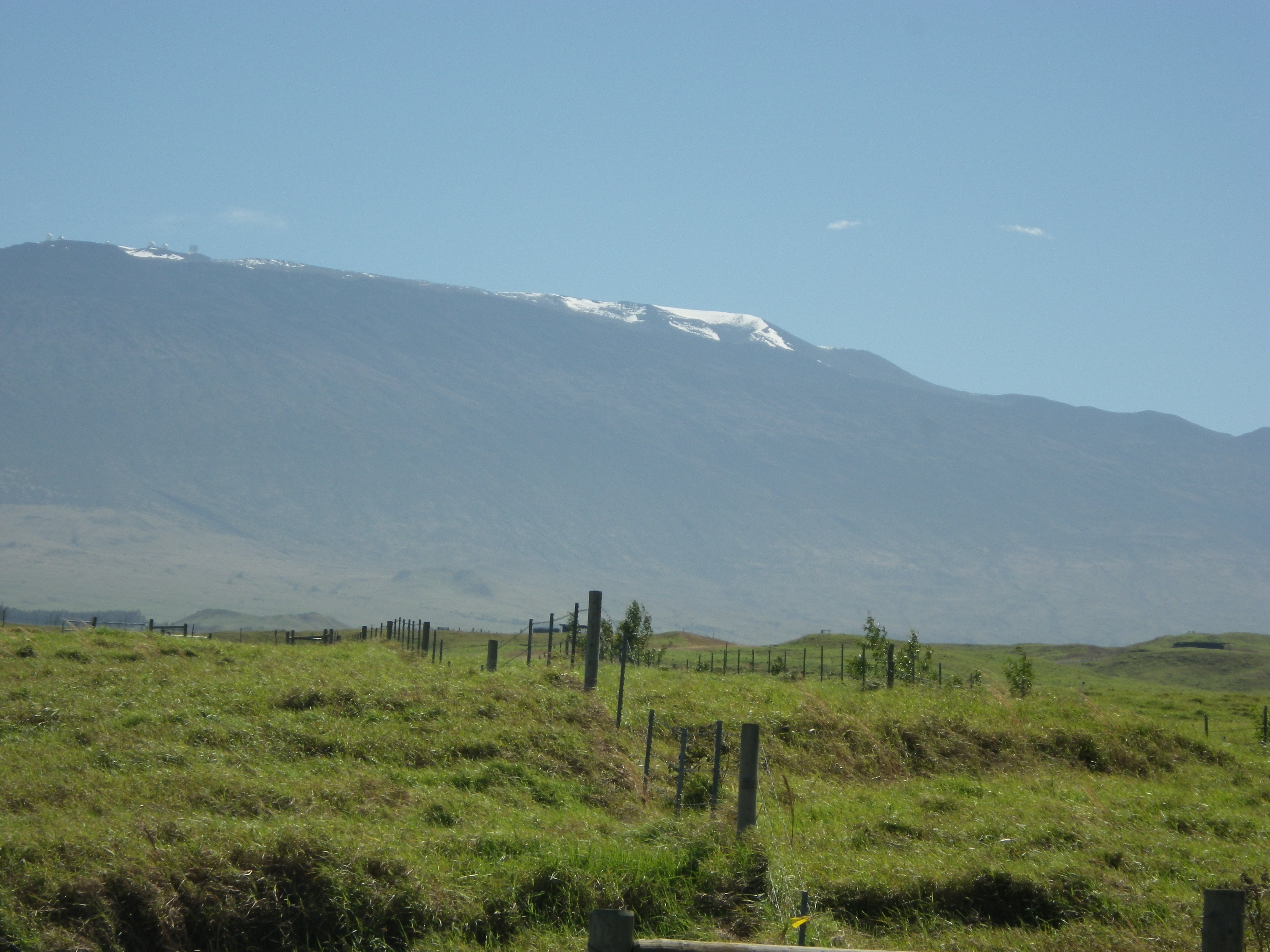 After lunch, we took the old highway 19 that runs south of the new highway between Honoka’a and Waimea. Small, narrow, with lovely views of Mauna Kea, a horse and a wild turkey.