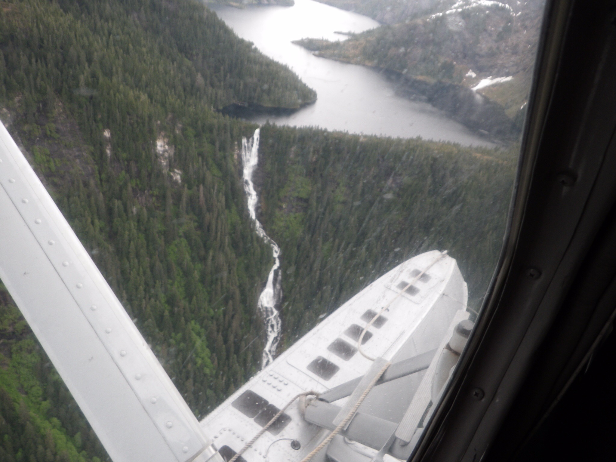 This is the lake we landed on. When we took off, we flew over the waterfall.