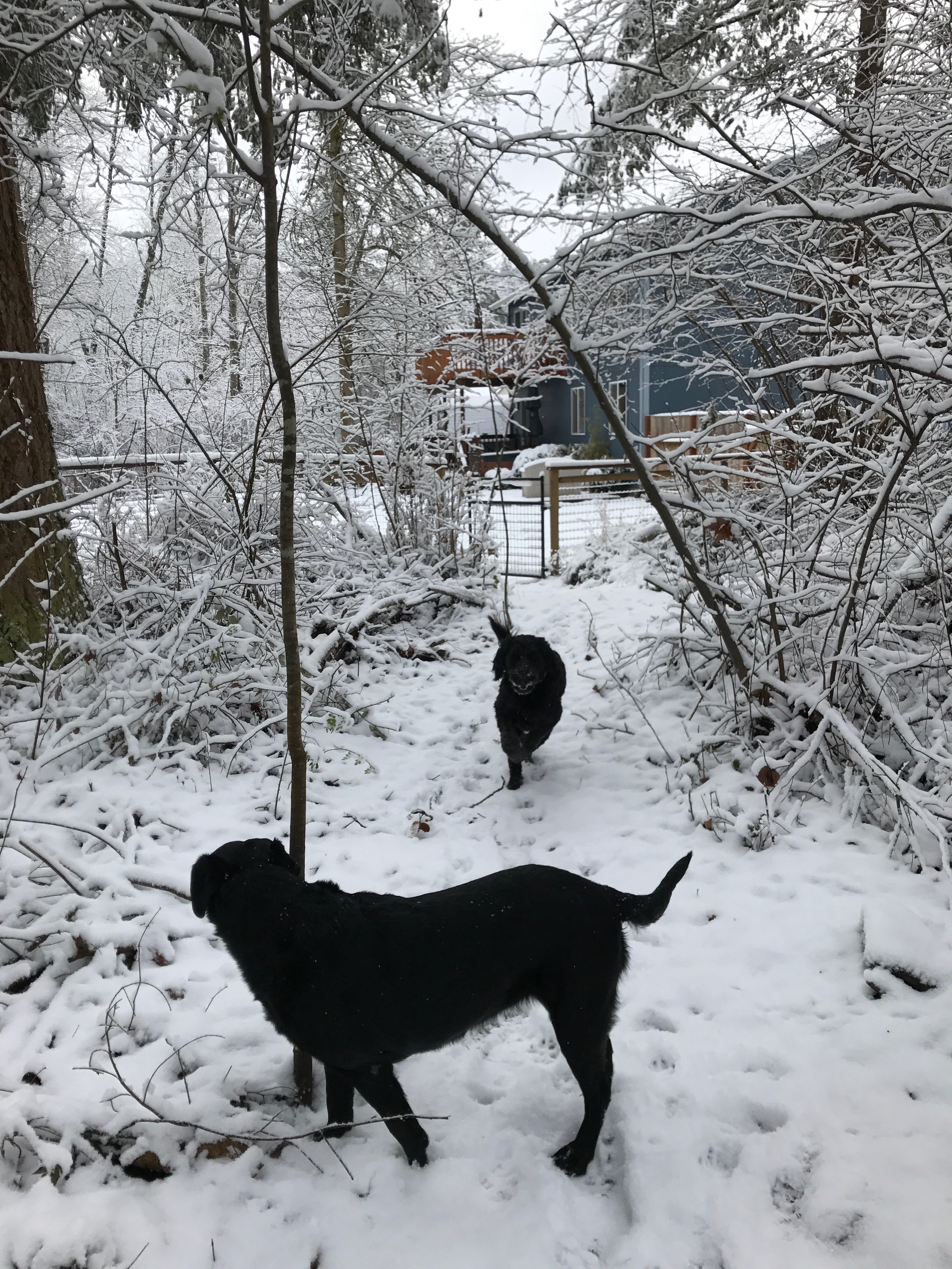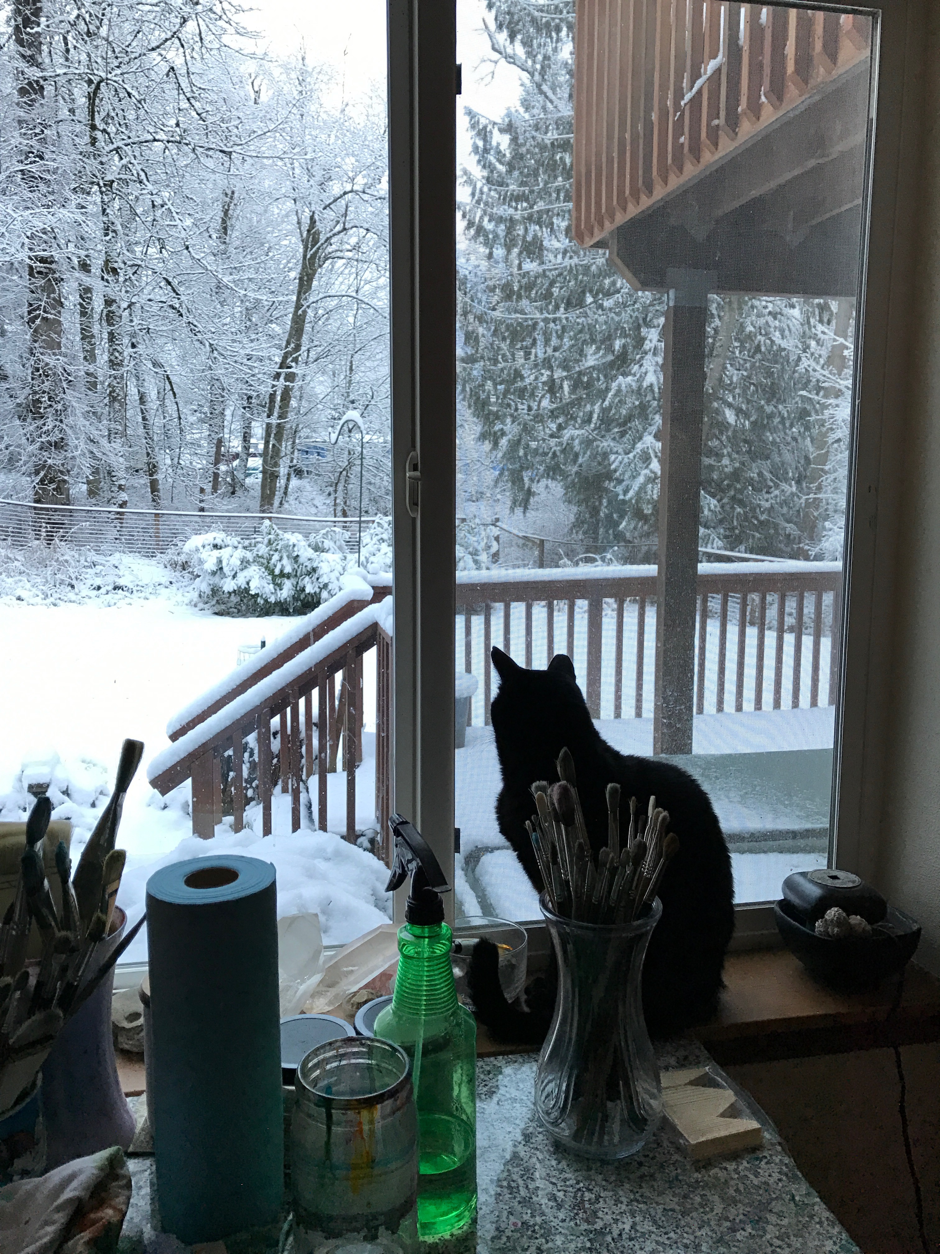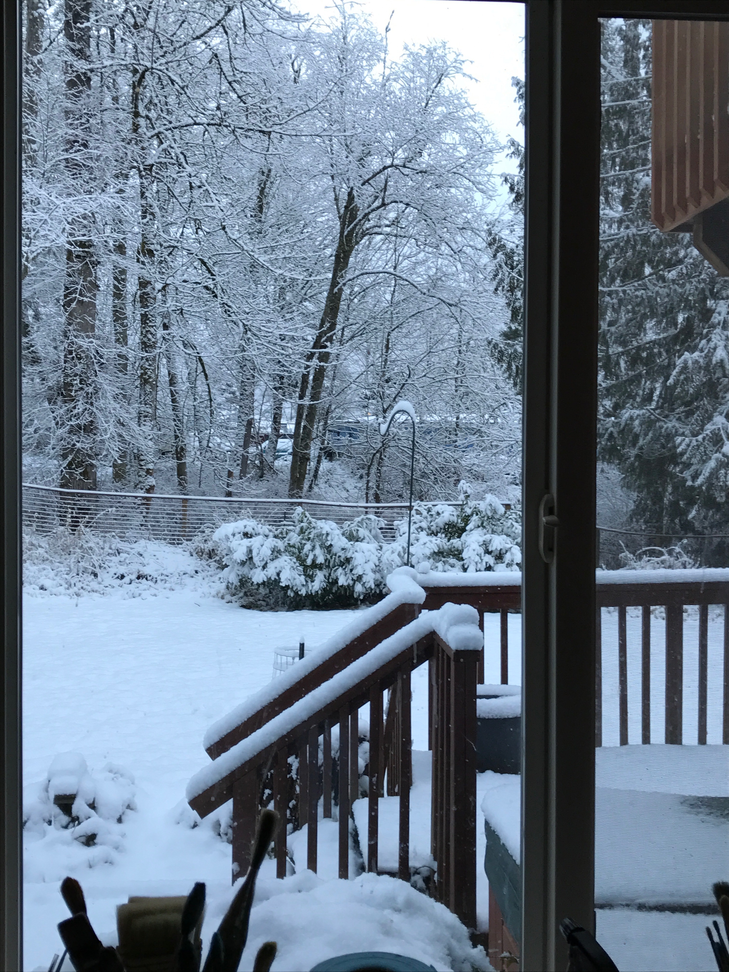 It’s been many years since I lived anywhere with the potential for snow. And even here, in the Pacific Northwest, if it does snow, it doesn’t last long. But it snowed last week and there’s still a little left. I loved it. Loved the bright white and golden light , the pale blue shadows.