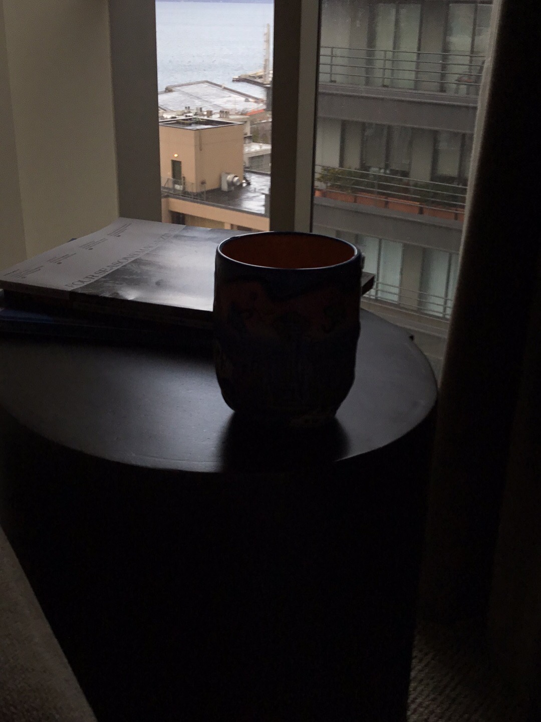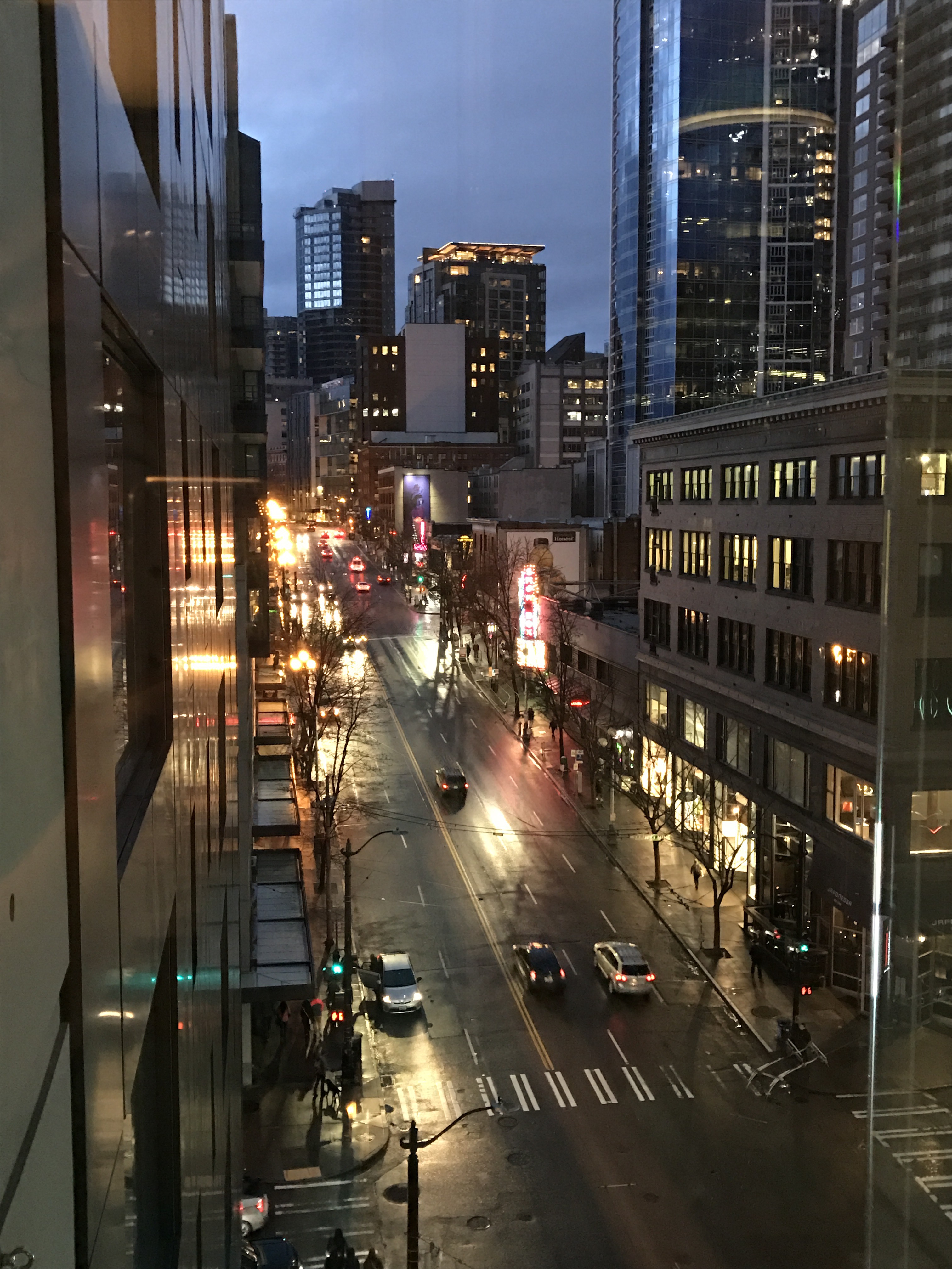 I’ve never been in a 5 Star hotel before, although I’ve been in many very nice ones. But the Four Seasons in Seattle is my first. It’s lovely. And you are treated like you are the most important person to walk through the doors, which does a lot to soothe frayed nerves.