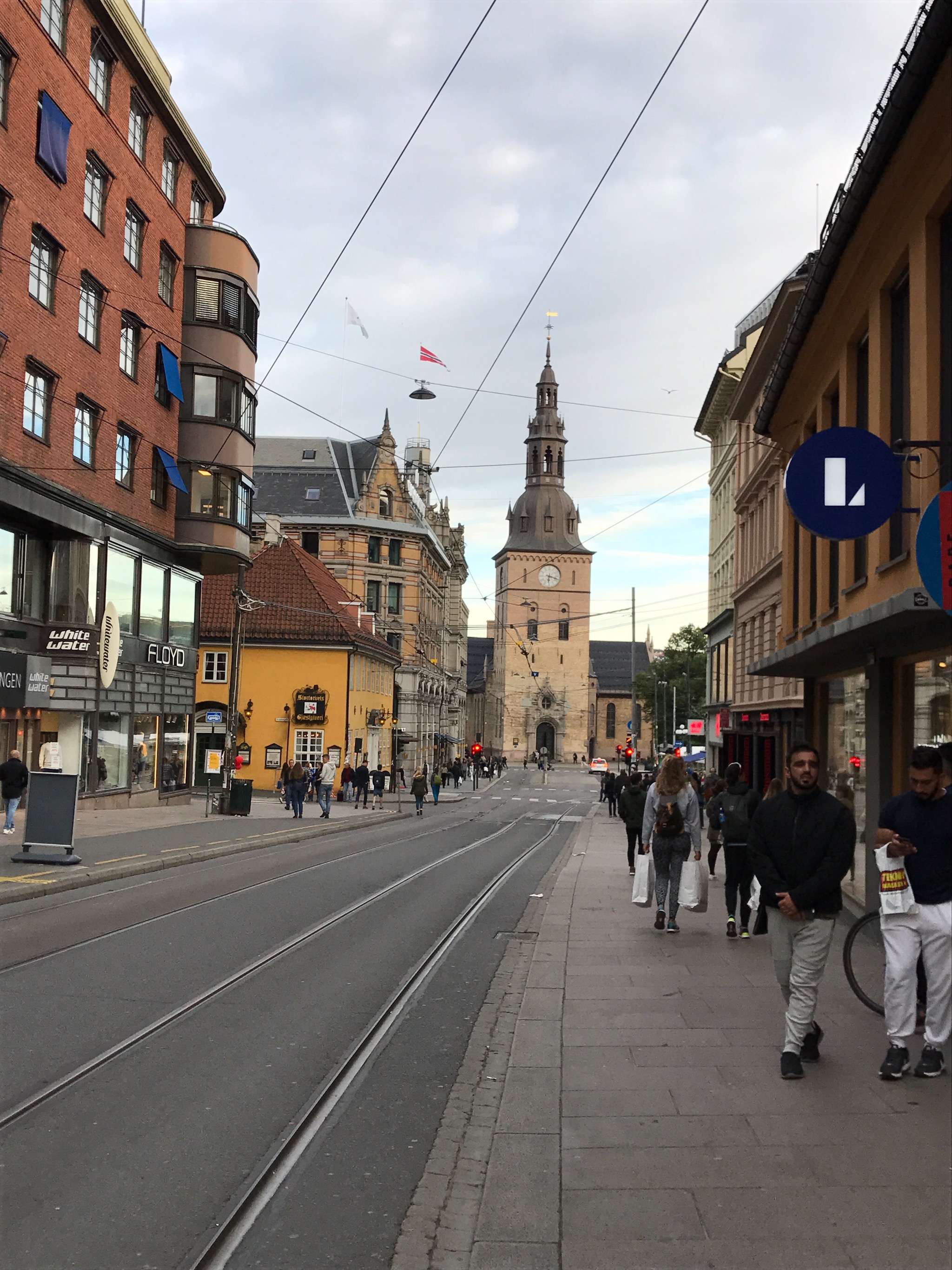 And then we realized we’d not eaten all day. Oops. So we had dinner at 4pm with the theater crowd (first of three theater crowd rush hours) in a restaurant called LOVE. We dined for two hours, then walked the streets of Oslo before returning to our room.