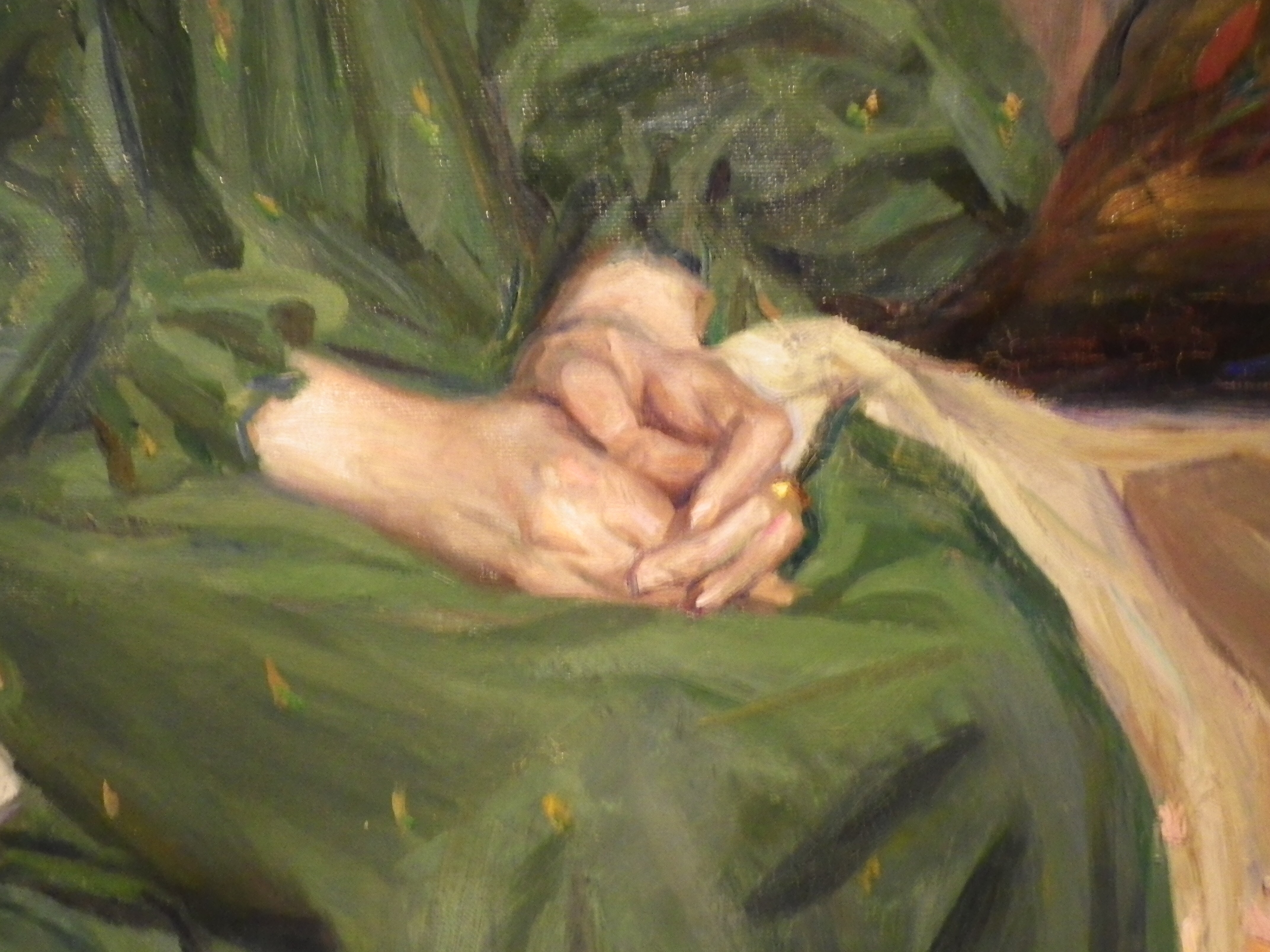I am so grateful that Mr. Al loves to check out the paintings as much as I do. He goes for the design and color and interpretation. I love that, too, but I also love walking up close and seeing how the artist actually painted the painting…what colors went on top of others, where the strokes were bold, where they were refined, how some angles were sharp, others softened…the blending of light and shadow. And how delightful you are allowed to use your camera, now. I can now take a close up of hands, or lips or an eye so I can use the Masters to teach me when I am painting hands, lips and eyes. Delightful.