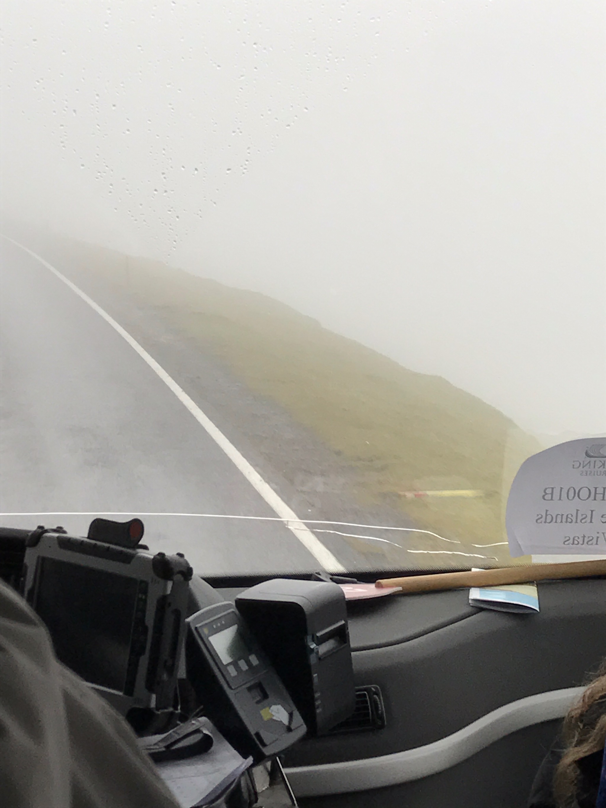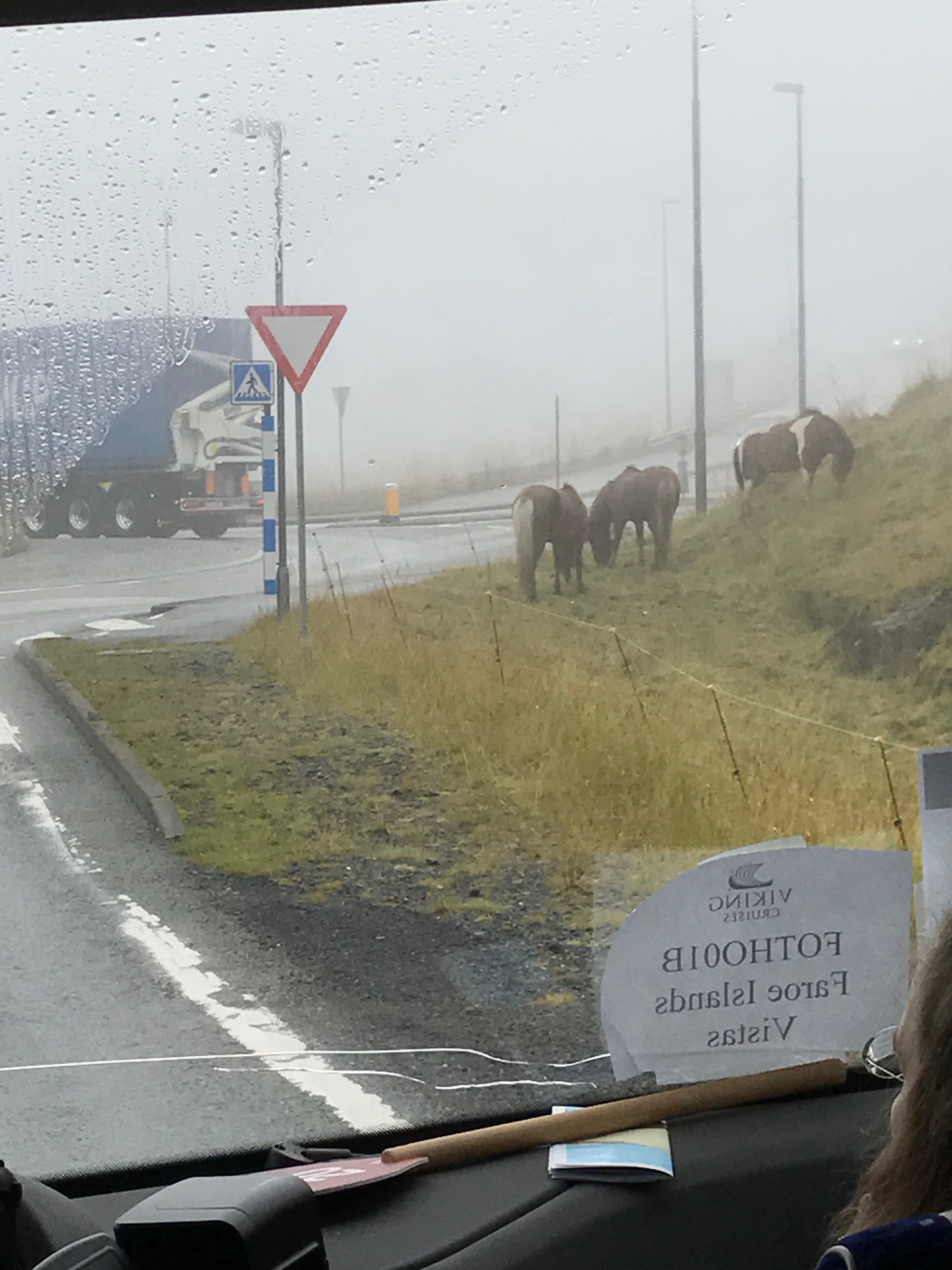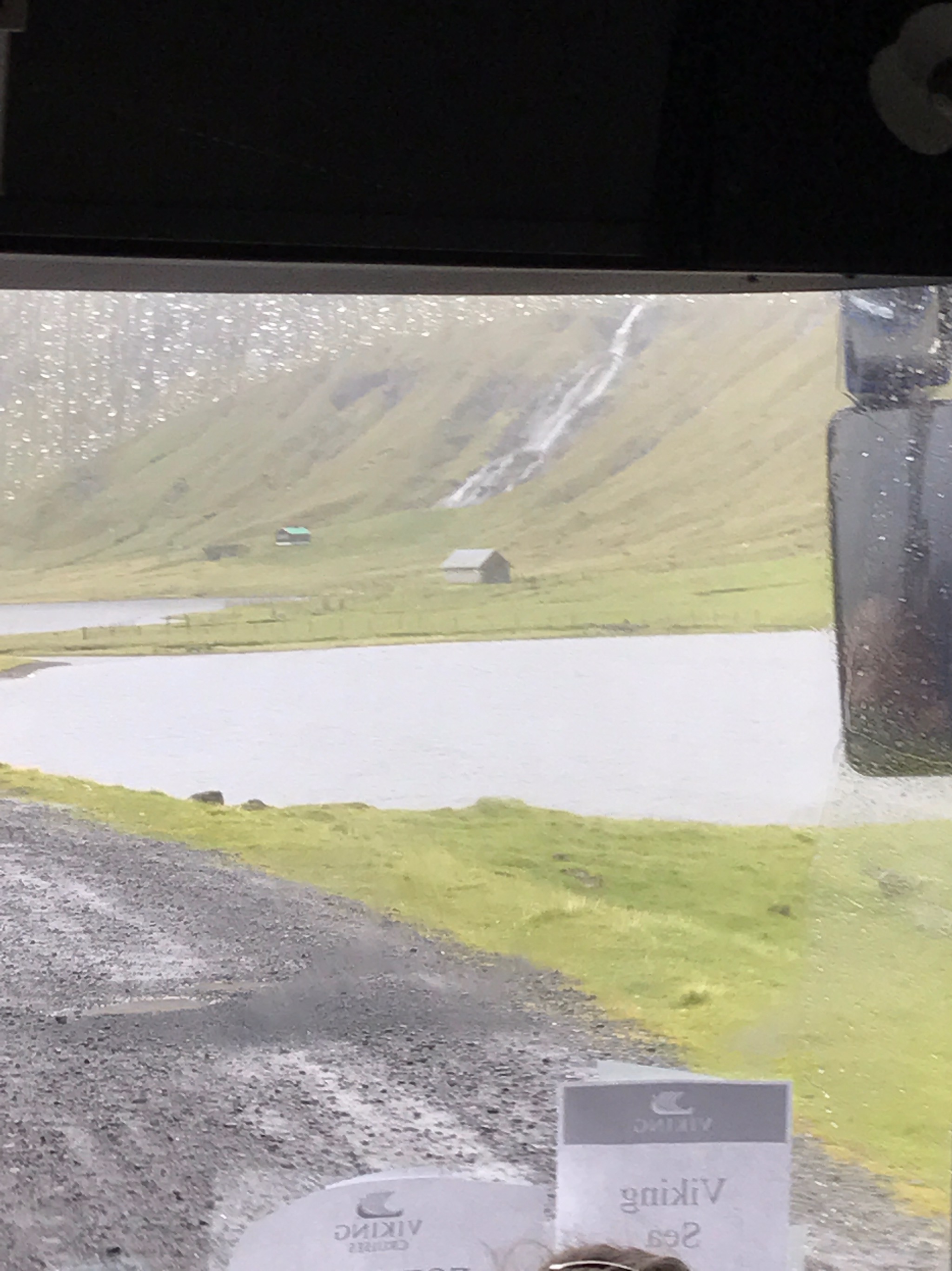 I leave you now with pictures of the Faroe Islands….like I said, it was raining, so I took most of the pics from a bus tour through the front window because it was a rain-drop-free-zone…we did brace the weather, however, to walk into town and I took some pics there, as well. The walk to town was quite something….wind, rain, sleet (!) but it still felt warm- Ish. Enjoy!