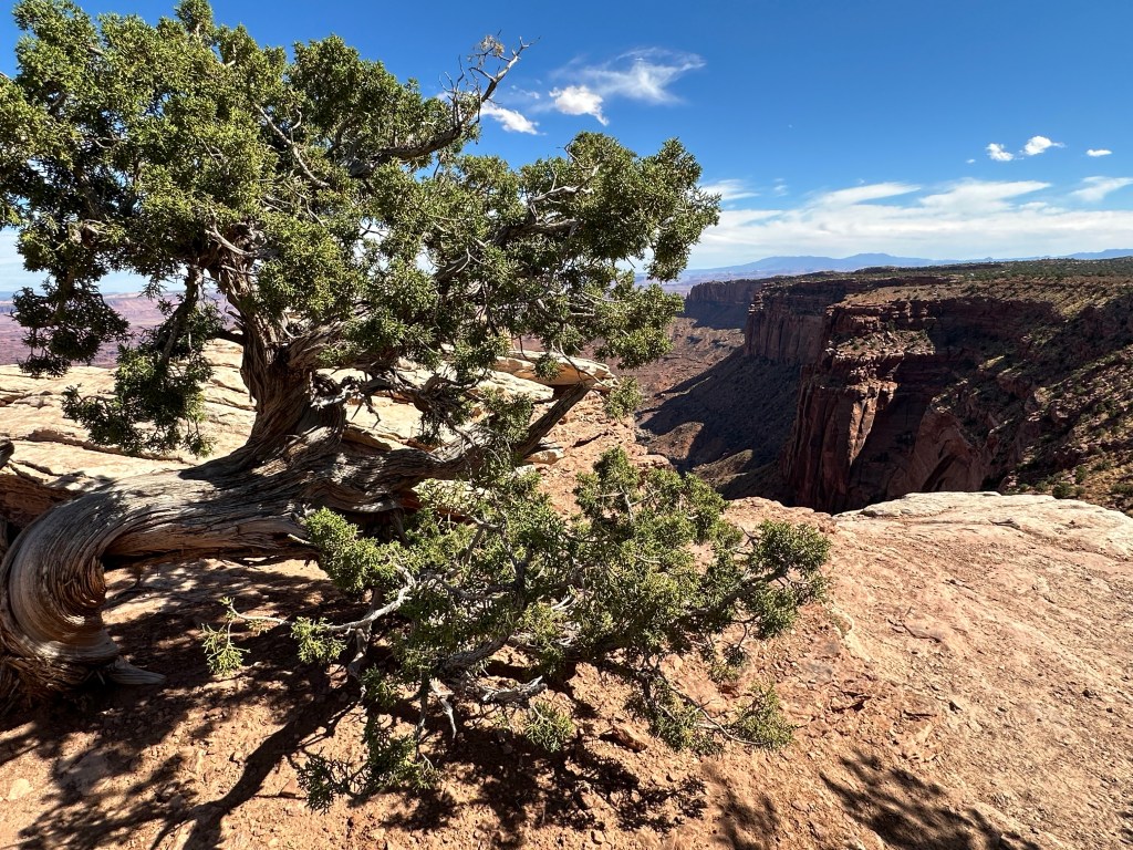Don’t you love that evocative name for a National Park? That is the name of the portion of Canyonlands we visited…Island in the Sky. And it was. You cross a short bridge over a 6000 foot deep chasm and there you are.